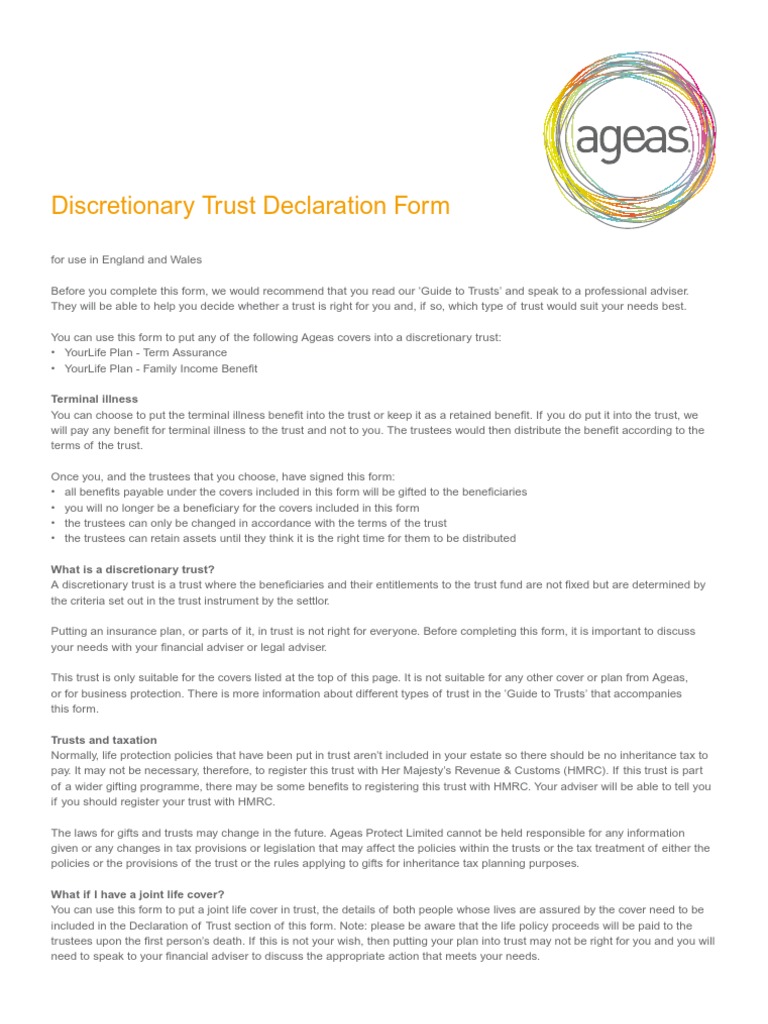 Discretionary Trust Form | Trust Law | Trustee